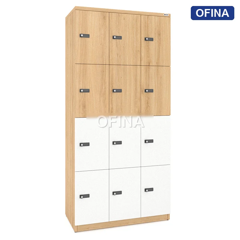 Tủ locker gỗ 12 cánh khóa mật mã LKG12MM-TG thuộc bộ sưu tập tủ locker gỗ mới nhất tại OFINA. Sản phẩm kết hợp giữa tinh thần tối giản đương đại và độ bền vượt trội — lựa chọn ưa thích của các kiến trúc sư thiết kế nội thất văn phòng cao cấp.